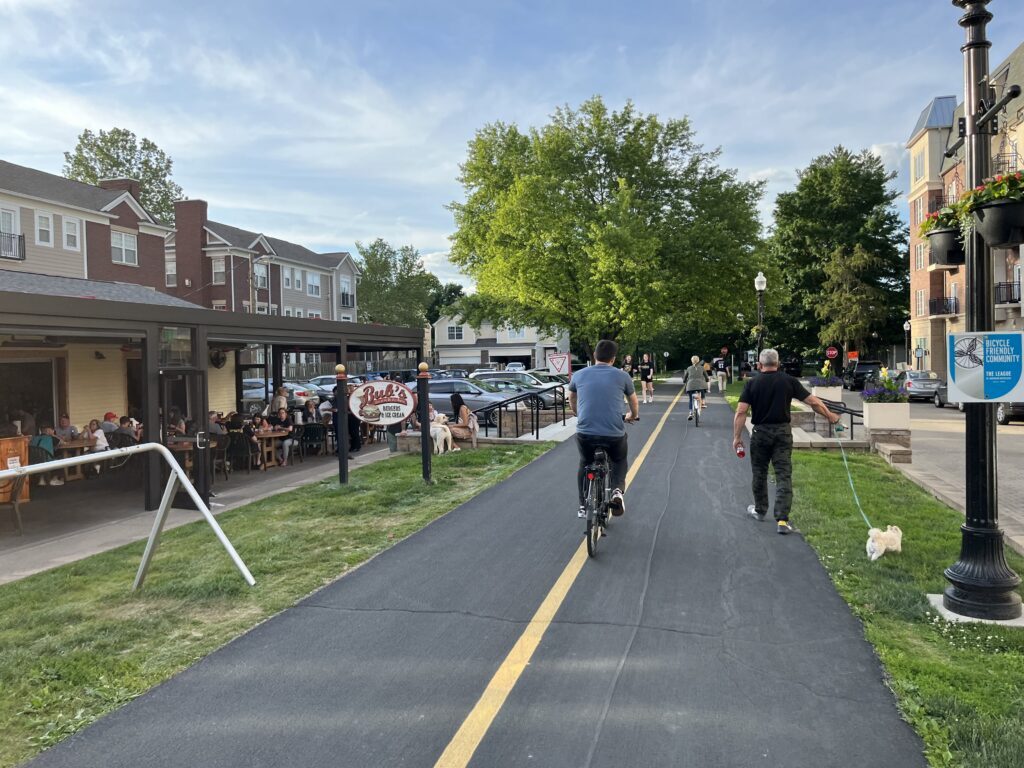 The city’s investment in the Monon Boulevard/Midtown Plaza has in turn catalyzed an estimated $850 million in private investments around the district (as of 2022).This includes both multifamily residential and commercial investments. It also resulted in increased trail use by pedestrians, joggers and cyclists; increased numbers of visitors and attendance at community events; and higher property values for residences within a quarter mile of the trail. Carmel’s award-winning Midtown district redevelopment demonstrates what happens when the trail is seen as an asset, and how trail-oriented development can offer a return on investment both economically and in improving quality of life.