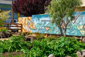 Investing in the community is a huge focus for the community—as demonstrated by organizations like Urban Tilth, which in 2020 produced 10,725 pounds of food and distributed nearly 63,000 total pounds in the community. The team delivered 11,429 CSA (Community Supported Agriculture) boxes, many of them to families who applied during the pandemic to receive free produce. On Wednesday afternoons, the team sets up a free farm stand on the greenway with food produced on a 3-acre farm in North Richmond that was once a vacant county-owned lot. This September, they entered into a 30-year agreement with Contra Costa County to continue to develop the farmland.